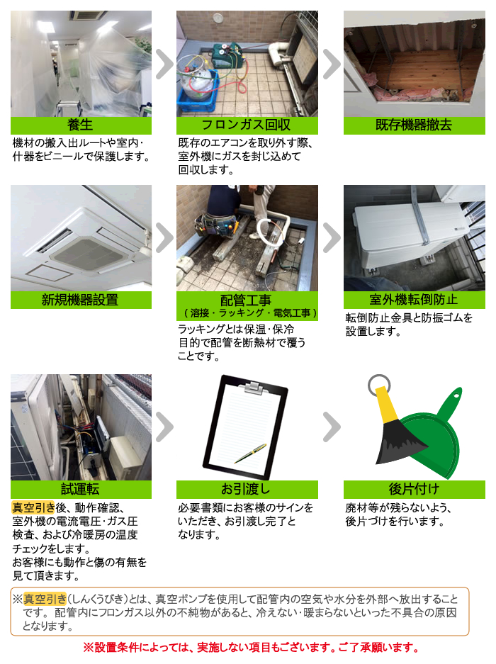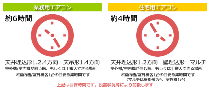 エアコン設置までの流れ まずは、お電話かメールでお問合せ下さい 日程調整後、現場調査にお伺い致します(※クイック見積もりの場合、省略させていただく場合もございます) お見積書をご提示させていただきます 内容等確認後に、ご契約となります 工事を行います 工事の流れ 無料のお見積もりをご希望のお客様はコチラ 標準工事時間(入替時) 室外機が手搬入で設置できる場所なら作業目安時間は約4時間のマルチエアコン ダイキン マルチパック PAC-40RV メーカー:ダイキン 型番:PAC-40RV 定価:502,200円(税込) 価格:160,704円 (税込) パナソニック パックマルチエアコン 45タイプ (6畳+6畳) 壁かけ×2台 室内機 CS-M222C2×2 /室外機CU-M452C2 メーカー:パナソニック 型番:室内機 CS-M222C2×2 / 室外機CU-M452C2 定価:394,200円(税込) 価格:126,144円 (税込)